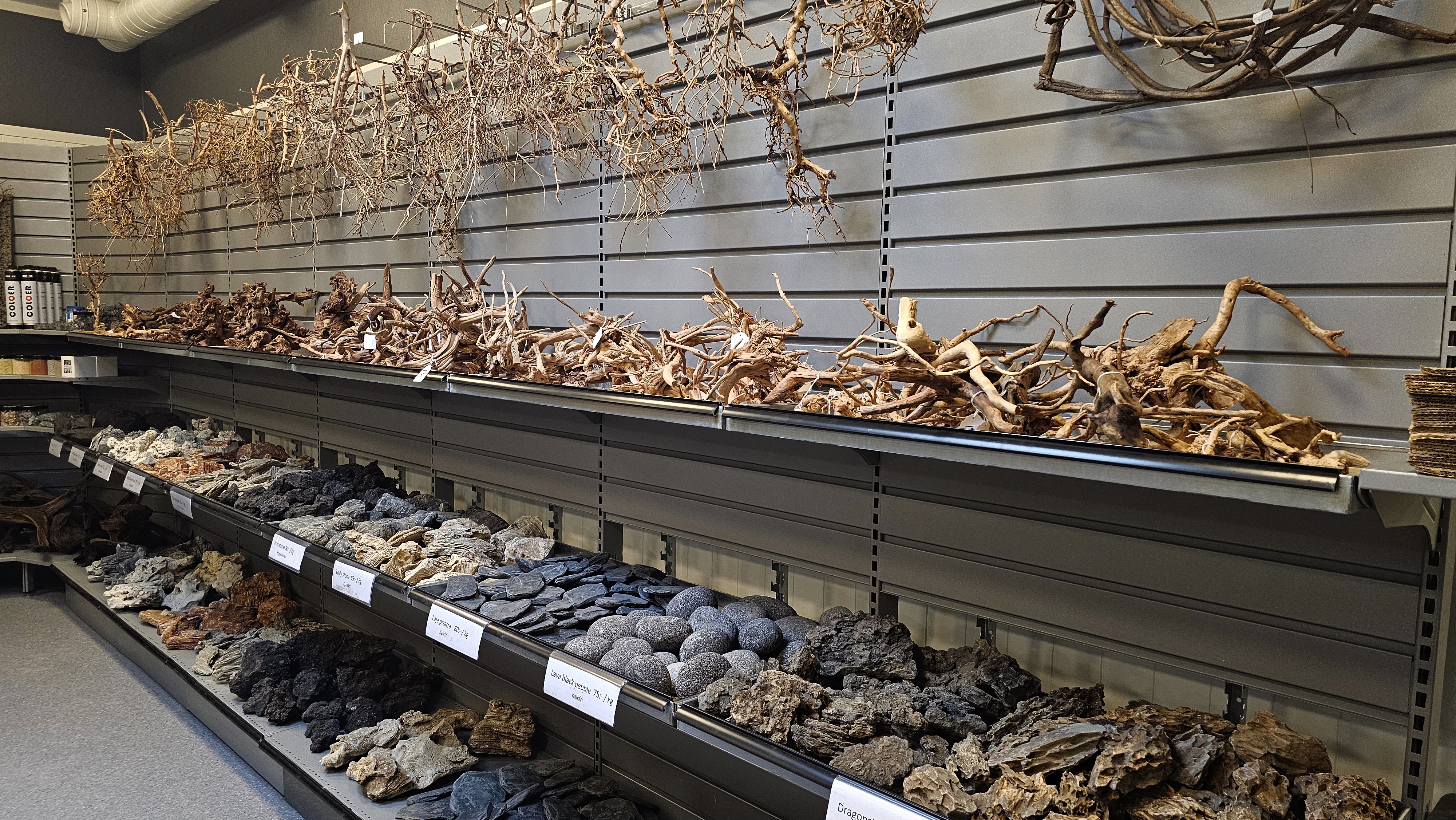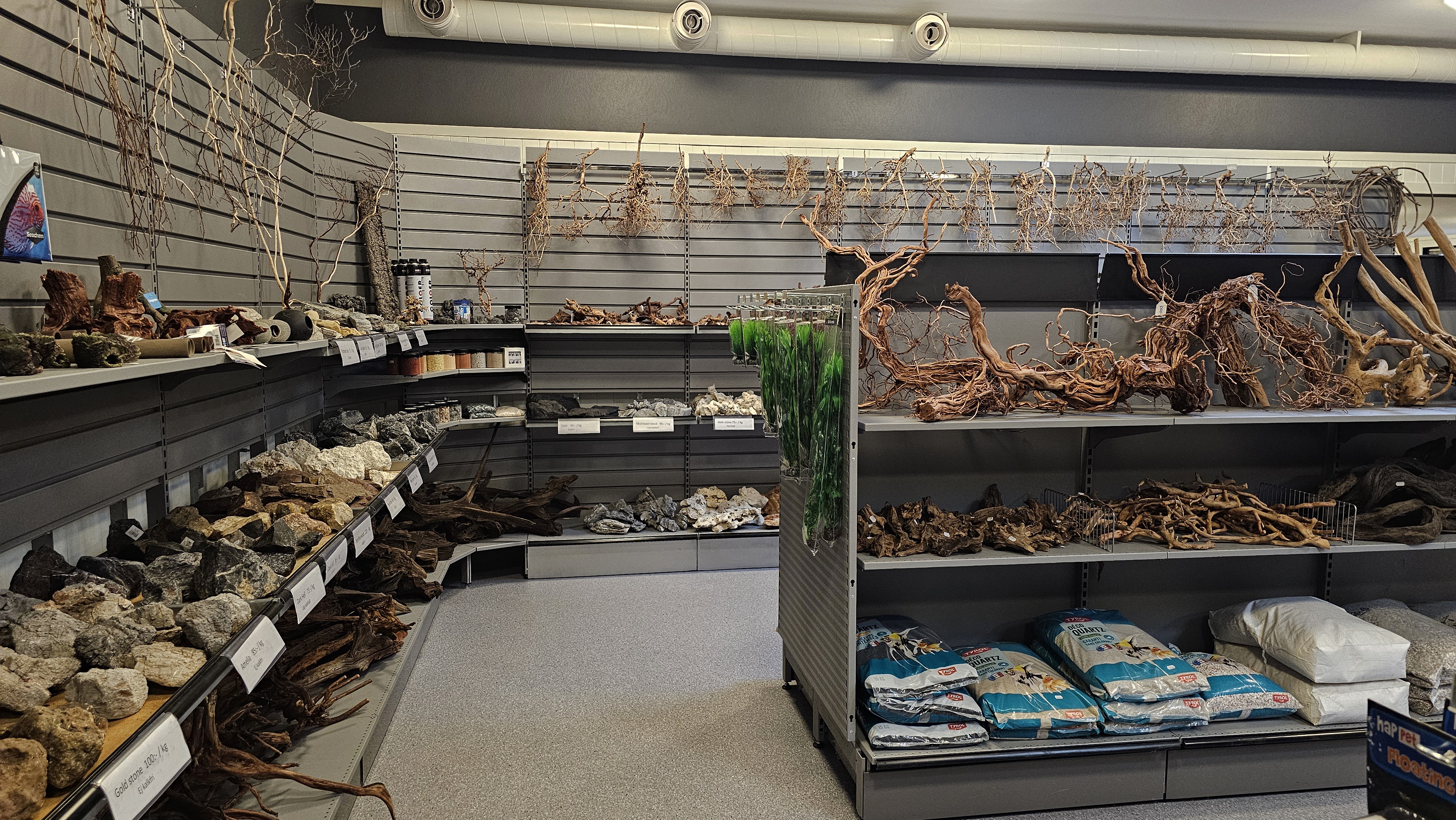 I butiken finner du allt en akvarist kan tänka sig med ett brett sortiment av sötvattensfisk och inredning. Vår målsättning är att alltid ha något för alla, oavsett inriktning och stil. Hos oss kan du drömma dig bort bland våra akvarium, fiskarna från de olika världsdelarna och vår avdelning med inredning där bara fantasin kan stoppa dig. Här finns även våra avdelningar för terrariedjur och dammfisk.